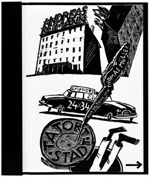 - 11 Bl. als Leporello 50 num. und sign. Exemplare Holzschnitte (Schriftgrafik und Bilder),