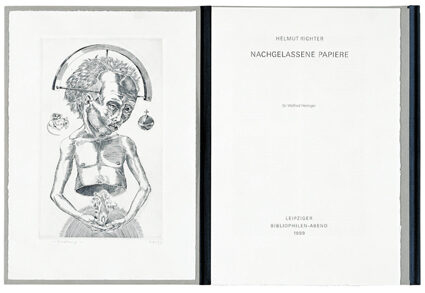 Home Bibliophile Editionen 24x34. Blätter zu Literatur und Grafik Helmut Richter: Nachgelassene Papiere Für Walfried Hartinger Christian Weihrauch: 2 Kupferstiche, 1999, 8 Bl., 2 aufgeklebte Kupferstiche in Mappe 50 num. u. sign. Exemplare Buchdruck: Offizin Haag-Drugulin, Leipzig Schrift: Univers light Gesamtgestaltung: Christian Weihrauch ←Hildegard Maria Rauchfuss: Gedichte Karl Mickel: Das Marmorbild→