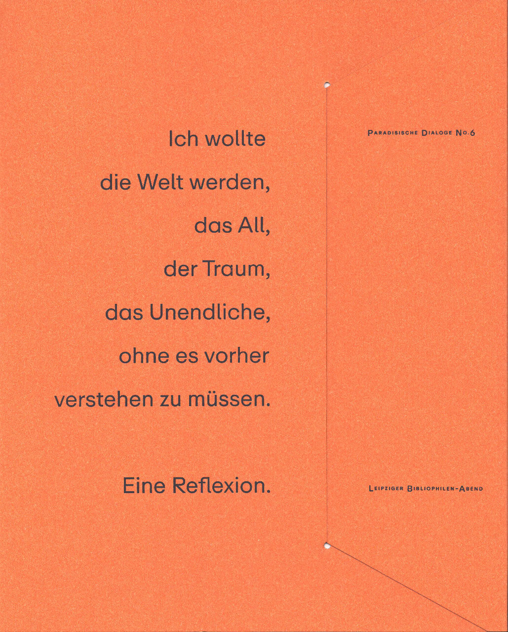- Sechster Druck der Reihe »Paradiesische Dialoge«, herausgegeben von Michael Hametner für den Leipziger Bibliophilen-Abend e. V. im Jahr 2023.