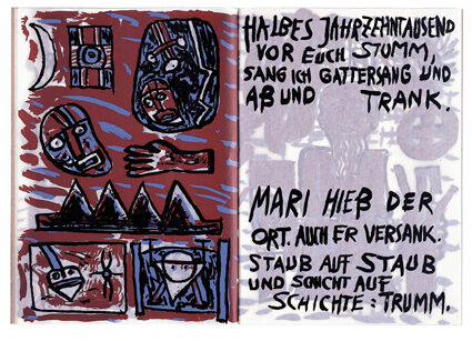 Home Bibliophile Editionen 24x34. Blätter zu Literatur und Grafik Wilhelm Bartsch: Urnansche, das verschollene Lied seiner verschollenen Lieder Prosa Frieder Heinze: ein- u. mehrfarbige Serigraphien, 1989 14 Bl. Halbleinen Siebdruck: Hartmut Tauer, Auenhain Gestaltung, Schriftgraphik des Textes: Frieder Heinze Buchbinderische Fertigung: Werkstatt Matthey, Halle ←Werner Heiduczek: King Lear Uta Mauersberger: Gedichte→